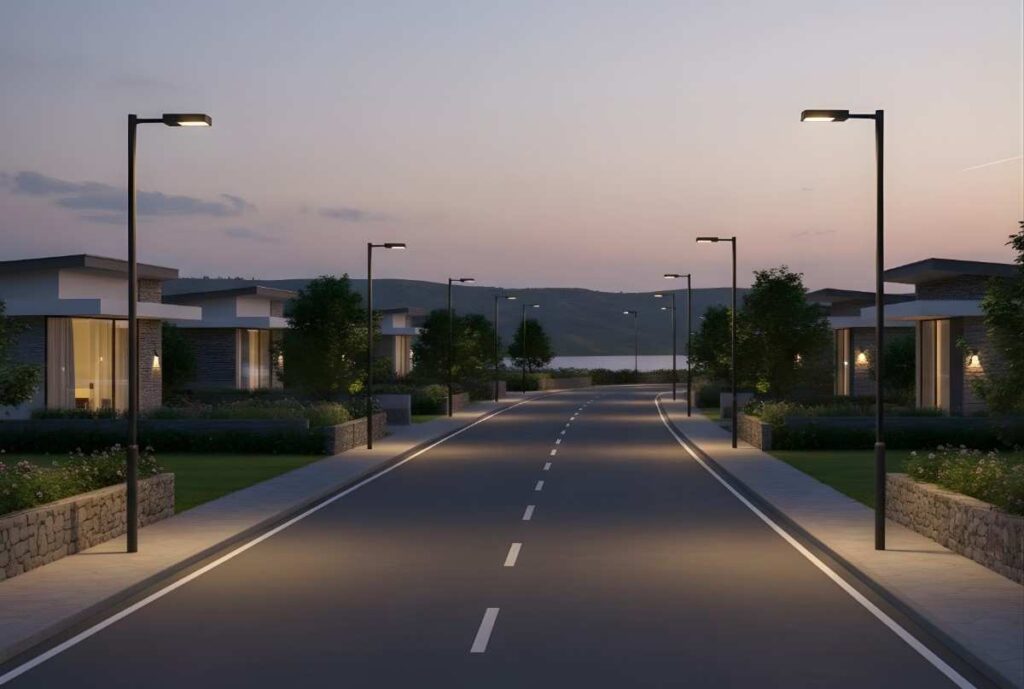 Smooth internal roads for safe driving and easy movement. Wide enough for two-way vehicles and emergency access. Adds comfort and safety to daily living.